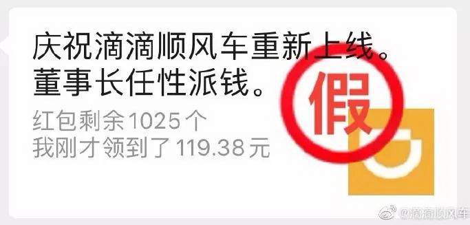 滴滴顺风车近日表示,近两天收到不少用户的反馈,收到“庆祝滴滴顺风车上线”名义的红包链接。滴滴顺风车称,顺风车目前并未上线任何营销活动。请转告身边的亲朋好友,保持警惕,不要轻易点击任何可疑链接,避免可能发生的财务损失。